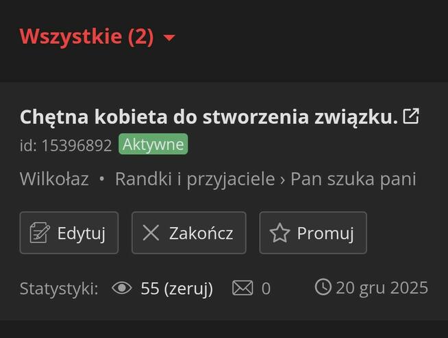 Witam. Czy jest chętna pani do stworzenia związku. Jestem podobno nie brzydkim facetem. Na codzień pracuje zawodowo, ...